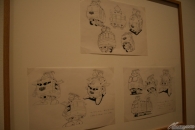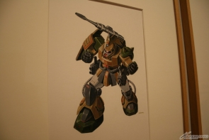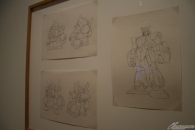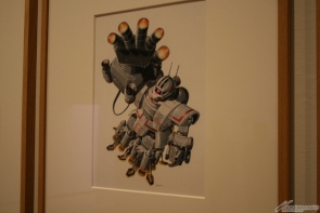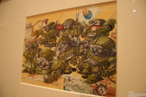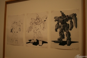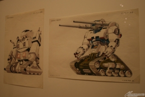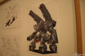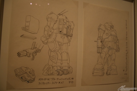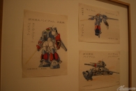▲周囲に配置された『装甲騎兵ボトムズ』の設定資料、原画は「1/1スコープドッグ」に勝るとも劣らない迫力だ。