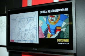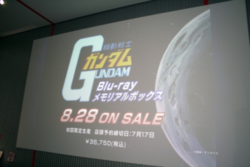 ▲ The big screen plays a trailer for the Mobile Suit Gundam Blu-ray Memorial Box, due out August 28th.
