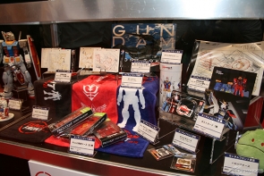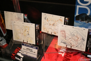 「ガンダムフロント東京」で販売中の限定グッズの数々を展示!開催中の「機動戦士ガンダムの誕生とアニメーター安彦良和展」(7/31まで)にあわせて、原画イラストを使用したポストカードやクリアファイルも販売中!