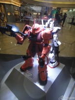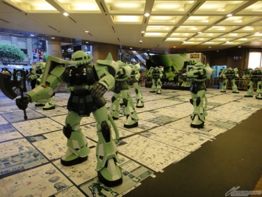 See a 6-meter-high, 1/3-scale Gundam and Char Custom Zaku face off, an array of twenty RG-based 1.8-meter-high Zakus on patrol, and more!