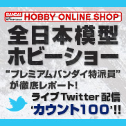 一つは、プレミアムバンダイ特派員がイベントを徹底レポートする「ライブTwitter配信‘カウント100’」で、会場の様子やホビーオンラインショップの商品など、気になる情報が公式アカウント「@HobbySite」から100つぶやき目指して発信される。