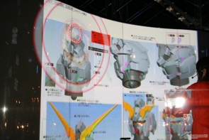 ▲「触れずに触れる超合金 キネシス」の展示では、「G.F.F. METAL COMPOSITE ユニコーンガンダム」が巨大モニターに出現。手をかざすことで自由自在に回転やズームを行えるというものだ。