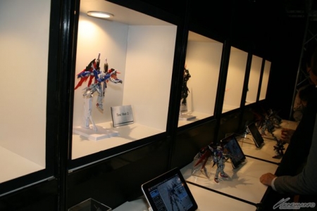 ▲タッチ&トライのコーナーでは、最新アイテム「METAL BUILD デスティニーガンダム」の魅力を実際に触って堪能することができた。また、テストショットから製品化までの道のりがわかる展示も行われていた。