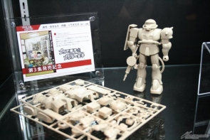 ▲「プラモ男子とプリチー女子-ミズオとイエナの一年戦争-」からは、第3集(11/29発売)の発売を記念したプレゼントキャンペーンの賞品である、川口名人プロデュースの旧キット「1/144 量産型ザク ミズオカラーVer.」の実物も!