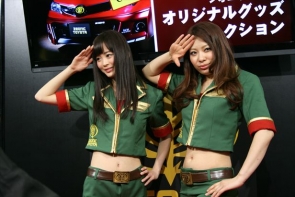 ▲ブースでは、シャア専用オーリスとジオニックトヨタのコンパニオンが来場者をお出迎え!