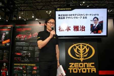 さらに同ブースでは、シャアのものまねでお馴染みの芸人、ぬまっち氏やジオニックトヨタ関係者をゲストに迎えてのトークショー、コンパニオンによるジオニックトヨタオリジナルグッズの紹介など、様々な催しが予定されている。