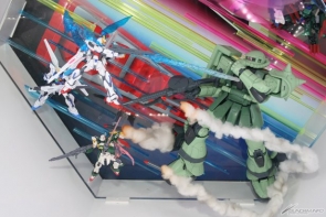▲プラモデルコーナーでは、『ガンダムビルドファイターズ』本編の一場面を再現するジオラマも!