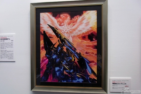 展示は入選作品に加えて、協力プロダクションや招待作家によるゲスト作品もあり、その中の1つとして「ユニコーンガンダム3号機 フェネクス」の描き下ろしイラストが展示されている。