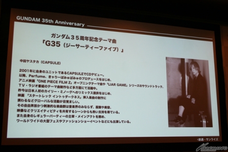 発表会では、35周年記念作品となる『機動戦士ガンダムUC episode 7「虹の彼方に」』、『ガンダム Gのレコンギスタ』、『機動戦士ガンダム THE ORIGIN』の最新PVが公開されたほか、今夏開催予定の「機動戦士ガンダム展」や、実物大ガンダム立像の次なる展開「REAL G Next Project」、中田ヤスタカ氏による35周年テーマ曲「G35(ジーサーティファイブ)」など、プロジェクトの情報が明らかに。