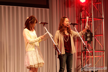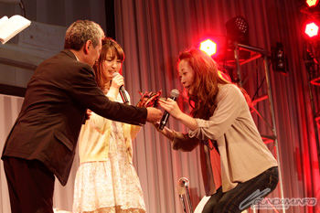 イベントは、お笑い芸人・ぬまっち氏司会のもと、豪華ゲストを招いての二部構成で行われ、ステージ前半には『機動戦士ガンダム』のシャア・アズナブル役でおなじみの池田秀一氏、そしてガンダムシリーズ最新作『ガンダムビルドファイターズ』でイオリ・セイを演じる小松未可子さんと、レイジを演じる國立 幸さんの2人が登壇。いよいよクライマックスを迎える同作の名場面と名ゼリフを振り返った。