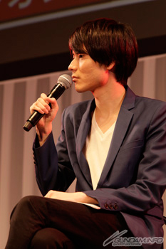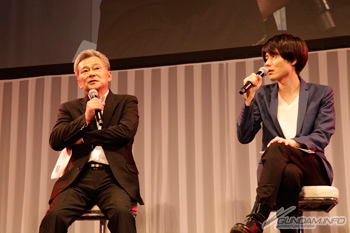 ステージ後半には、小松さん、國立さんに代わって『機動戦士ガンダムUC』で主人公のバナージ・リンクスを演じる内山昂輝氏が登壇し、池田氏とともに名場面を振り返った。いよいよ5月17日(土)にepisode 7「虹の彼方に」の映像展開を控えた両氏からは収録時のエピソードや裏話が飛び出した。