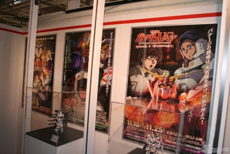 ▲episode 1~6までの告知ポスターと各話を代表するMSのガンプラが展示中!