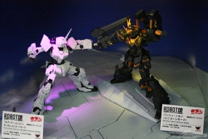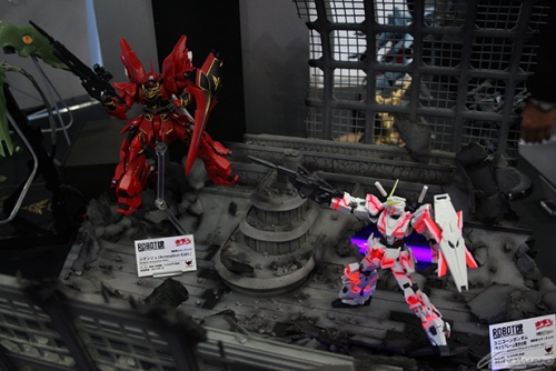 ▲「ガンダムUC」のジオラマコーナーでは、ラプラスでのシナンジュとの戦闘やガルダでのユニコーン同士の対決など、各エピソードの名シーンをROBOT魂で再現!