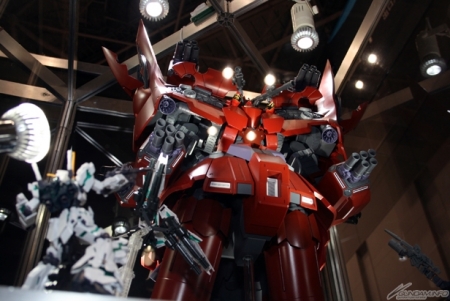 会場内バンダイブースでは、TVアニメ新シリーズが2014年秋にスタートすることが明らかにされたばかりの『ガンダムビルドファイターズ』のガンプラを中心とした展示に加え、同じく本日公開されたティザーイラストを模したジオラマもお目見え。