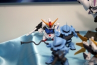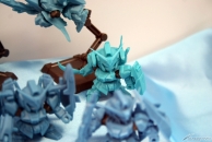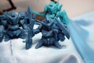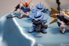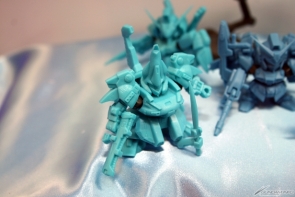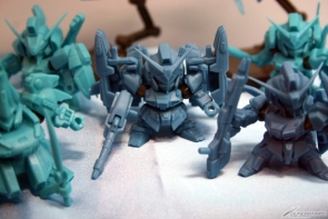 ▲TVアニメ『ガンダムビルドファイターズ』新シリーズのティザーイラストを模したジオラマも!3機のシルエットからは、イラストではわからないディテールが読み取れるかも!?