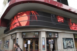 ▲映画館の外壁に設置されたモニターでは、上映会のためだけに再編集されたPVを上映!