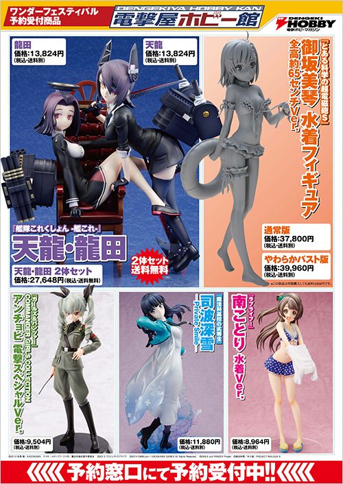 雑誌「電撃ホビーマガジン」、「ガンダムホビーライフ」などで掲載された作例などの展示コーナーや、フィギュアなどの物販コーナー、そしてニコニコ生放送と、見どころがたくさん用意されるが、特に注目なのは、「ラブライブ!」、「とある科学の超電磁砲S」、「魔法科高校の劣等生」、「艦隊これくしょん -艦これ-」、「ガールズ&パンツァー」といった人気作品のフィギュアの予約を会場で受け付けていることだ。