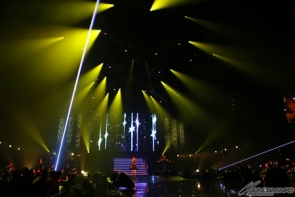 “宇宙”というのは、まさに『ガンダム』のOPテーマである「BLAZING」のイメージ通りだ。ステージでも星空や流星のような映像がバックに流れ、Music Videoも宇宙をテーマにしており、茨城県鹿嶋の宇宙センターにあるパラボラアンテナをバックに撮影したという。『Gのレコンギスタ』とのタイアップが決まる以前から宇宙をテーマにした曲が多く、すごいジャストなコラボだねと話していたそうだ。