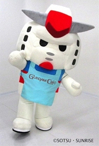 The Gundam Café location at Diver City Tokyo Plaza celebrates its third year with an appearance by its "Gundam Tencho" mascot.