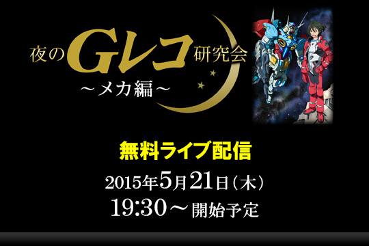 Gundam Café Akihabara's "Evening G-Reco Salon: Mecha" event, slated for 7:30 PM on May 21st, will stream from this post.