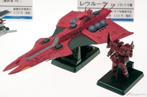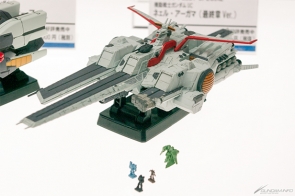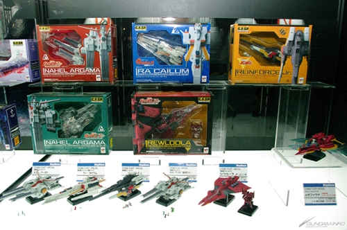On display were all five of the released Gundam Cosmo Fleet Special ships, alongside the Megafauna, due in July, with its first shipment-bonus clear fins equipped.