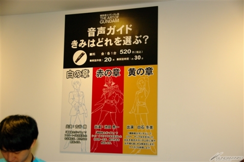 ▲展示作品をより一層楽しむための音声ガイドは、アムロ役の古谷 徹氏による「白の章」、シャア役の池田秀一氏による「赤の章」、ミライ役の白石冬美さんによる「黄の章」がある。さらに「赤の章」には1日10台限定で「シャア専用機」が用意されている。