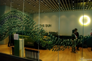 ▲大阪展の「ガンプラ大作戦」で制作された1,000体のガンプラは、会場と同フロアにあるカフェエリア「THE SUN」にて展示。1体だけ組み込まれた「RX-78-2 ガンダム」は、アムロ・レイ役の古谷 徹氏が今回のために制作したもの。