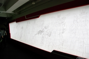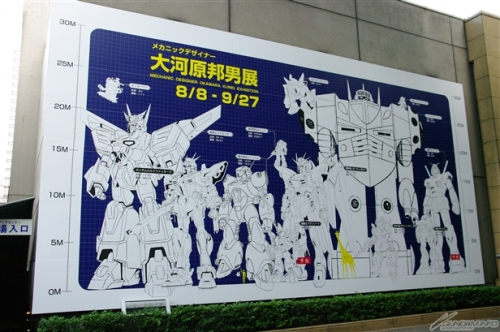 ▲会場外壁には代表的な大河原メカが描かれており、その大きさに圧倒される!