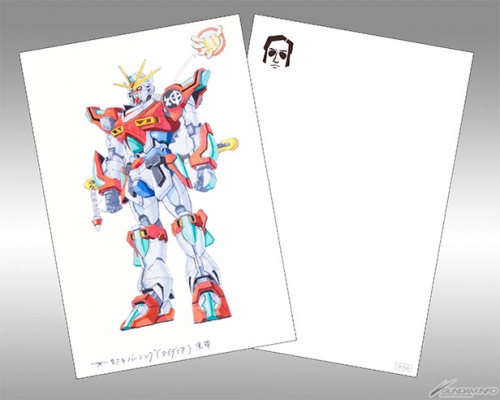 Attendees at the all-night screening of Gundam Build Fighters Try on September 5th will receive an illustrated card with mechanical designed Kunio Okawara's proposal for the "Kamiki Burning Gundam".
