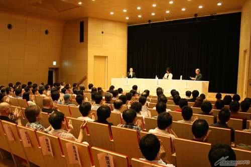 東京都美術館講堂を会場に、司会進行をアニメーション研究家・五十嵐浩司氏が務め、トークは大河原氏と永野氏が参加した作品のエピソードから始まった。
