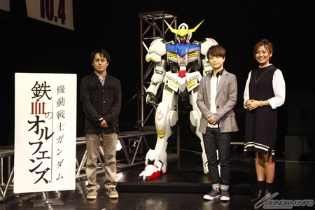 イベントでは、『機動戦士ガンダム 鉄血のオルフェンズ』の第1話「鉄と血と」が一足先に上映されたほか、「ROAD TO ORPHANS」と題したメイキング映像も上映。メイキングでは、キャラクターデザイン原案の伊藤 悠さん、メカデザインの形部一平氏や鷲尾直広氏、オルガ・イツカ役の細谷佳正氏が登場。細谷氏は本作のアフレコについて、「非常に楽しい。1カットの台詞にインパクトを持たせるというよりも全体の流れを滞りなくやるという感じで、吹き替えのような雰囲気」とコメントした。
