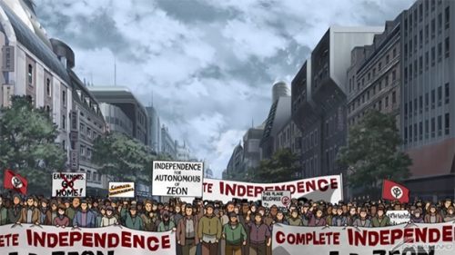 ▲MSだけではなく人物も実はCGで作り込まれている。デモ行進する群衆のひとり一人も、CGモデルが作られているのである。