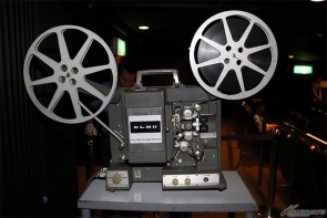 ▲上映に使われた16mmフィルム[左]、映写機[右]