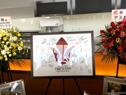 A commemorative photo is taken of both the guests and audience together and final comments were made. Their comments included, “[our comments] will be uploaded on the official twitter word by word without missing a thing,” causing the audience to be filled with laughter at the casts’ clumsy comments. Mr. Kawanishi, voice of Mikazuki, said while holding back tears, “I am so happy by the fact that Orphans is receiving love from so many people. As we approach the end of the year, I believe the broadcast will progress into a turbulent story…” He then comments, “Please continue to love and support Orphans!” and the event is brought to a close.