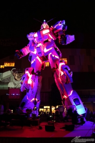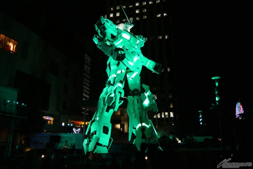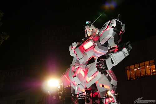実物大ユニコーンガンダム立像は、角の開閉や顔のモード変更、肩・腰・膝パーツの展開などのギミックで、ユニコーンモードからデストロイモードへの変身(変形)を可能な限り再現した演出を毎日実施。夜間には立像と壁面に映される映像とのコラボレーションが人気の演出「WALL-G」も実施される。