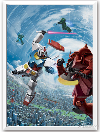 メインビジュアルのシャア専用ザクが描かれたイラストボードで、7駅達成賞品の「オリジナルステッカー」を貼れば、自分だけのオリジナル東京コロニーが完成する。また、全駅制覇賞品のガンプラをボードの前に立てれば、オリジナルのメインビジュアルが完成!