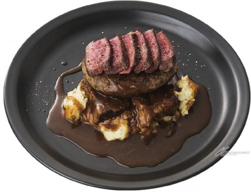 黒毛和牛を使用した、ハンバーグ、ステーキ、シチューの3種類で黒い三連星をイメージ。
