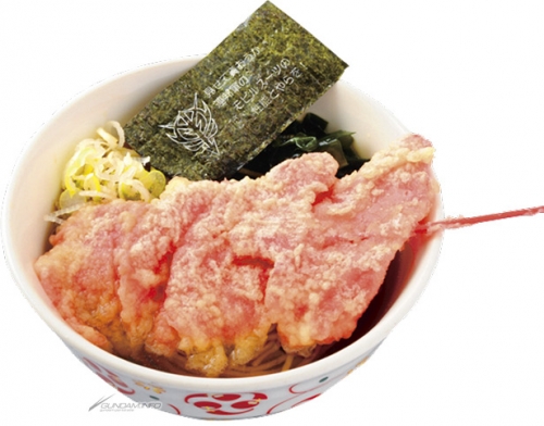 ▲いろり庵きらく「赤い彗星の紅生姜天そば」