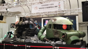 Le « Gundam Head [Bombed ver.] », époustouflé par attaque de Zeong au cours de la bataille sur A Baoa Qu et la « Production de masse Type Zaku Head [Bombed ver.] » avec un mono-œil soupçonneux éclairé à partir Mobile Suit Gundam ont été recréés pour apparaître grandeur nature lors de l’événement.