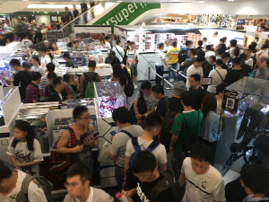 ▲LA POP DE BASE TOKYO GUNDAM-VERS LE HAUT DE MAGASIN - Divers objets dont l’événement-gundam limitée est apparu! Participants a attendu dans les longues files à la recherche d’éléments qui ne sont pas facilement disponibles à Hong Kong