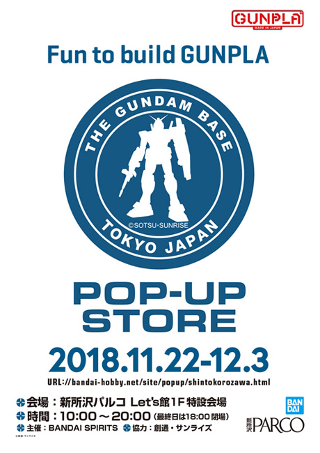 "LA POP DE BASE TOKYO GUNDAM-VERS LE HAUT DE MAGASIN" dans Shintokorozawa Parco du 22 novembre, 2018! Événement exclusif Gunpla apparaît