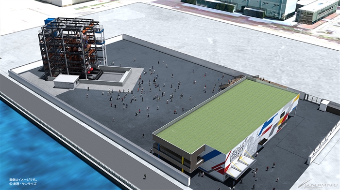 Zone de construction:Gundam-DOOK environ 604㎡(Hauteur du pont d'entretien d'environ 25m)/ GUNDAM-LAB environ 1440㎡(Cadre en acier de 2 étages, superficie totale au sol 2097㎡)