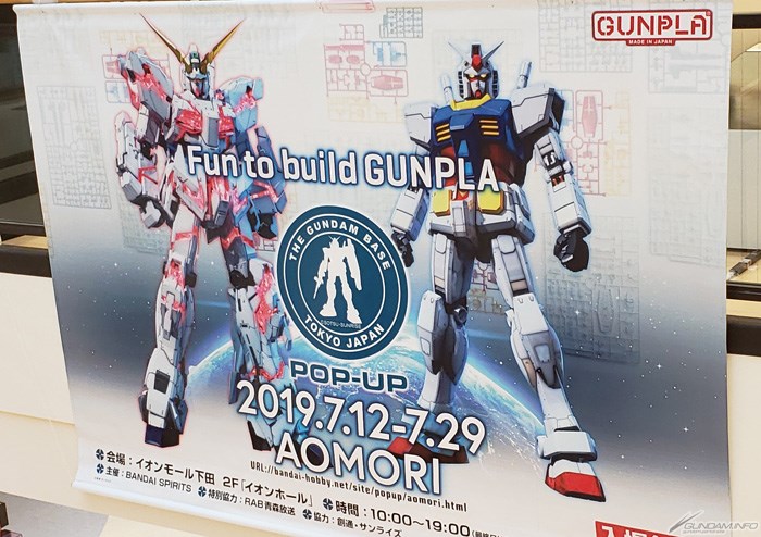 Une version condensée de l’installation de Gunpla "LE TOKYO BASE DE GUNDAM" appelé "LA POP DE BASE TOKYO GUNDAM-Vers le haut à AOMORI" à Aeon Mall Shimoda à Aomori commencé aujourd'hui, Le 12 juillet, 2019 (Ven). L’entrée est gratuite