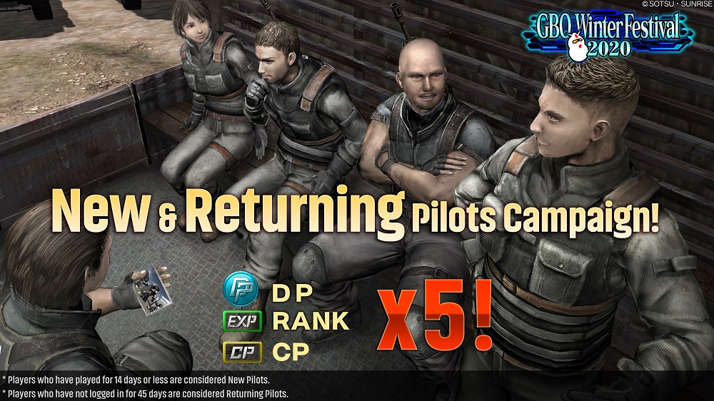 During this period, the combat rewards (DP, EXP, CP) will increase by 5 times! Take this opportunity to enjoy GBO2!