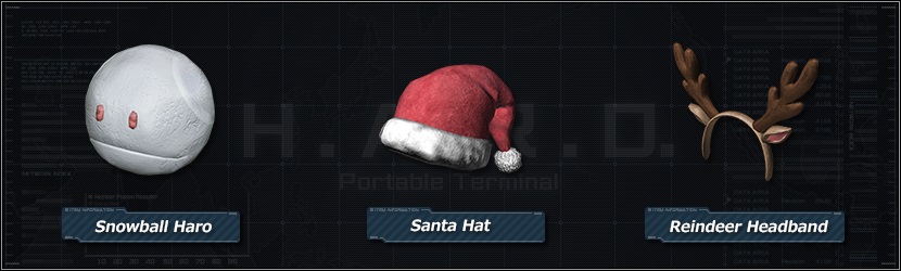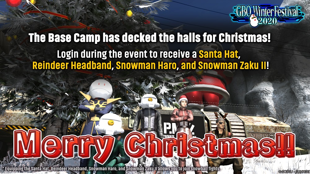If you log in during the campaign period, you will receive the new accessory "Snowball Zaku II," as well as the previously distributed "Snowball Haro," "Santa Hat," and "Reindeer Headband," as gifts!