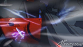 ▲蒼い炎をまとい超高速で突撃し、相手を4つに切り裂く「バーニングフレア」。