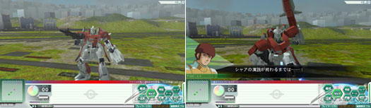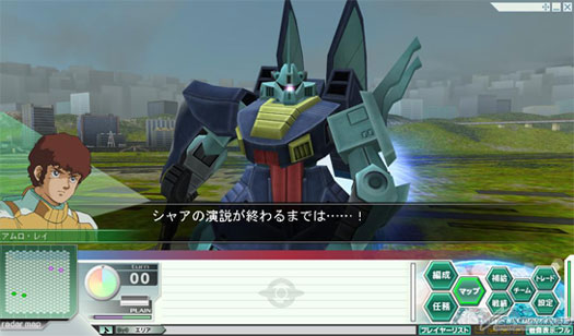 ▲ If the AEUG is victorious, it switches to the If route where Amuro's Zeta Plus duels the Byarlant. Amuro tears across the battlefield in a Zeta Plus painted in his personal colors.