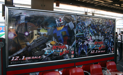 The nearest rail station to the event, JR Kaihimmakuhari, is also redone in Mobile Suit Gundam Extreme Vs. style!! From walls to carpets, ticket machines to escalator railings, the entire station is like stepping into Exteme Vs.!