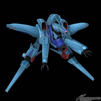 A transforming MS developed by Neo Zeon's military. Originally planned as a larger MA, its size was changed in development to improve maneuverability.