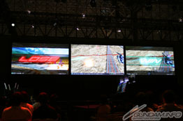 Kenichi Suzumura, familiar for his performance as Shinn Asuka in Mobile Suit Gundam SEED DESTINY, arcade version producer Baba, PS3 version producer Goto discussed info on the PS3 version and upcoming updates to the arcade version.